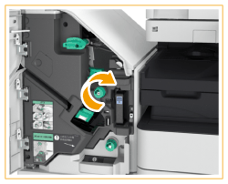 Rode o manípulo verde para enviar o papel encravado para o lado do Tabuleiro B.