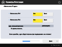 Нажмите кнопку <Вкл.> для параметра <Использовать IPv4> или <Использовать IPv6>, а затем нажмите кнопку <Далее>. Протоколы IPv4 и IPv6 можно использовать одновременно.