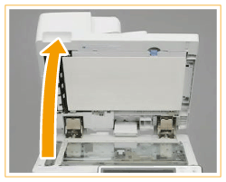 Dra i den övre spaken för att öppna luckan till dokumentmatarens scanningsområde.