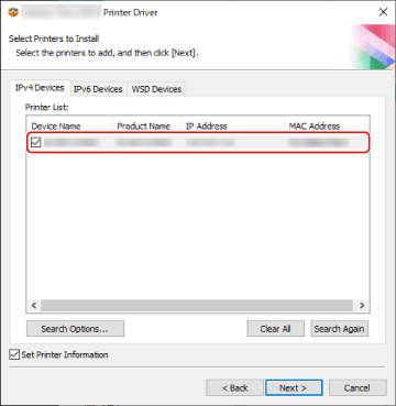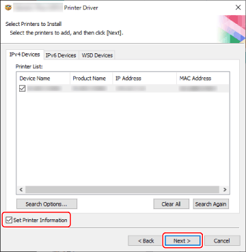 If you want to change the name of the device, or set it as the default device, select [Set Printer Information] → click [Next].