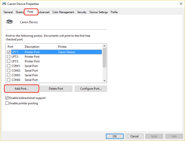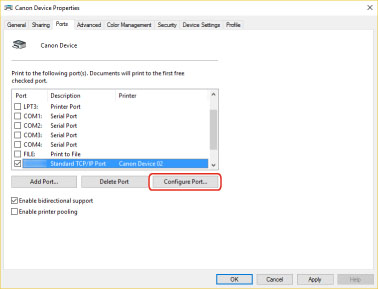 This explains the procedure for changing the port used by a device connected by a network to a standard TCP/IP port. If you temporarily set a port for the device when installing the driver, you can change it to the correct port by following this procedure.