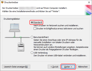 Wählen Sie [Standard] aus → Klicken Sie auf [Weiter].