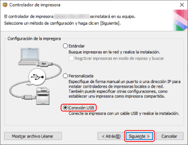 Seleccione [Conexión USB] → haga clic en [Siguiente].