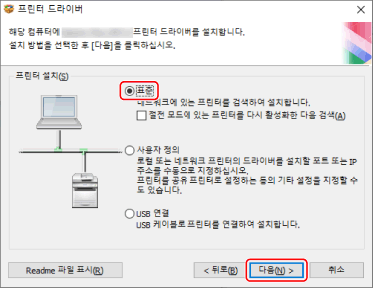 참고TCP/IP가 아닌 다른 네트워크 환경의 경우, 포트 또는 IP 주소를 지정하여 설치하는 절차를 참조하십시오.