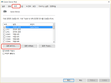 [포트] 탭 → [포트 추가]를 클릭합니다.