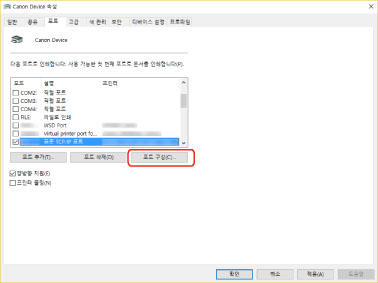 네트워크에 연결된 디바이스가 사용하는 포트를 표준 TCP/IP 포트로 변경하는 절차에 대해 설명합니다. 드라이버를 설치할 때 디바이스에 포트를 임시로 설정한 경우 다음 절차에 따라 올바른 포트로 변경할 수 있습니다.