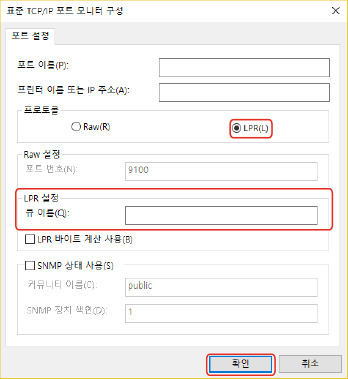 (1) [프로토콜]에 [LPR]을 선택 → [LPR 설정]의 [큐 이름]에 인쇄 대기열 중 하나를 지정합니다.
