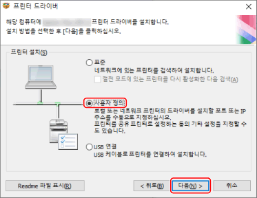 [사용자 정의]를 선택 → [다음]을 클릭합니다.