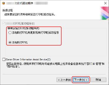 [Canon Driver Information Assist Service]:想要使用设备信息检索功能时选择此项。