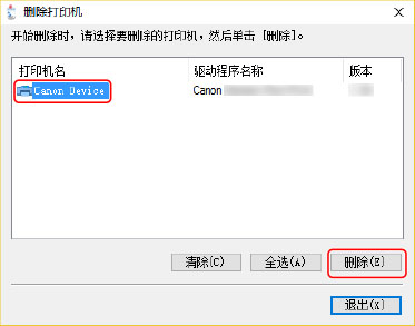 [清除]:单击此按钮可同时删除与列表中显示的所有驱动程序(而不仅是所选驱动程序)相关的所有文件和注册表信息。单击[删除]执行驱动程序的正常卸载。
