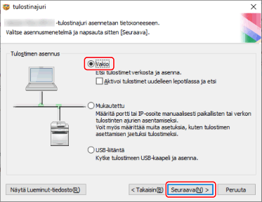 [Tulostinajurin asennus]: Valitse tämä tarvittaessa, jos ajuri on jo asennettu.