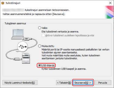 (4) Jos [Valitse liitäntätyyppi] ‑näyttö tulee esiin, valitse [USB-liitäntä] → napsauta [Seuraava].