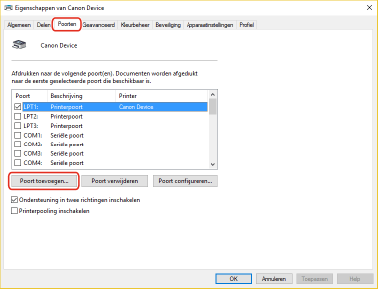 Klik in het dialoogvenster [Printerpoorten] op [Sluiten].