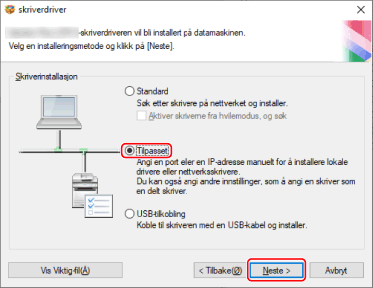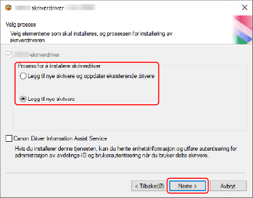 [Prosess for å installere skriverdriver]: Velg denne hvis det er nødvendig hvis det allerede er installert en driver.