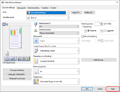 For detaljert informasjon om bruk av driveren og hver av funksjonene, se hjelp.
