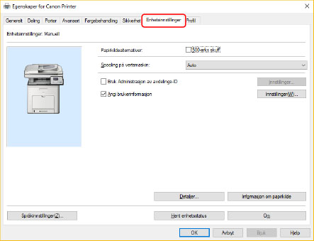 Klikk på [Enhetsinnstillinger]-arket.