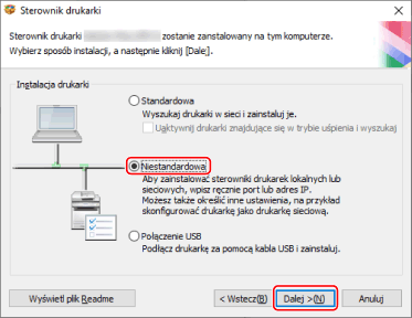 Wybierz opcję [Niestandardowa] → w wyświetlonym komunikacie kliknij przycisk [Dalej].
