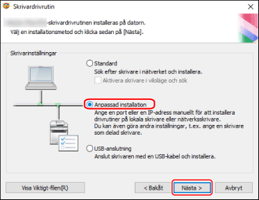 Välj [Anpassad installation] → klicka på [Nästa].