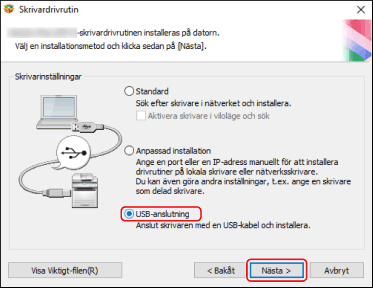 Välj [USB-anslutning] → klicka på [Nästa].