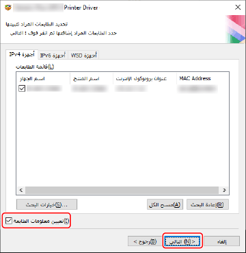 يمكنك البحث عن أجهزة على شبكات TCP/IP عند تثبيت برنامج التشغيل.