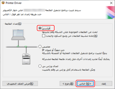 قم بتغيير [اسم الطابعة] إذا لزم الأمر ← انقر [التالي].