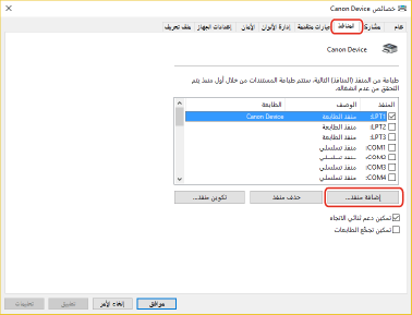 انقر علامة التبويب [المنافذ] ← [إضافة منفذ].