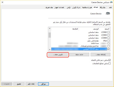 هذا يشرح الإجراء لتغيير المنفذ المستخدم بواسطة جهاز متصل بواسطة شبكة بمنفذ TCP/IP قياسي. إذا قمت بضبط منفذ للجهاز مؤقتا عند تثبيت برنامج التشغيل، يمكنك تغييره إلى المنفذ الصحيح باتباع هذا الإجراء.