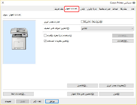 بواسطة هذه الإعدادات، يمكن استخدام وظائف الجهاز والطباعة بشكل صحيح.