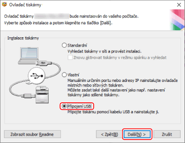 Vyberte možnost [Připojení USB] → klikněte na tlačítko [Další].
