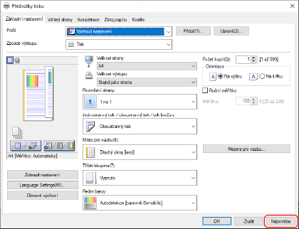 Nápovědu zobrazíte kliknutím na [Nápověda] na obrazovce ovladače.