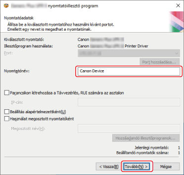 Szükség esetén módosítsa a [Nyomtatónév] beállítást → kattintson a [Tovább] gombra.