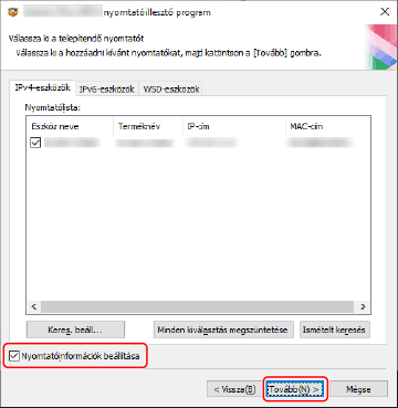 Válassza ki a telepítendő eszközt a [Nyomtatólista] listából.