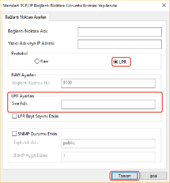 (1) [Protokol] için [LPR] öğesini seçin → [LPR Ayarları] alanında [Sıra Adı] için bir yazdırma sırası belirtin.