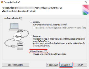 เลือก [การเชื่อมต่อ USB] → คลิก [ถัดไป]