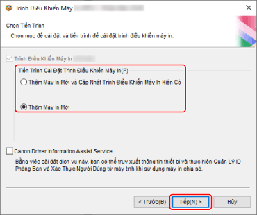 [Tiến Trình Cài Đặt Trình Điều Khiển Máy In]: Chọn phần này nếu cần thiết nếu trình điều khiển đã được cài đặt.