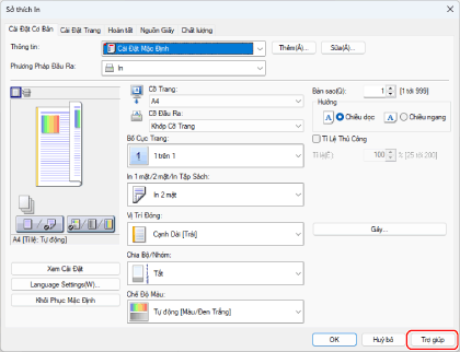 Phần trợ giúp được hiển thị bằng cách nhấp vào [Trợ giúp] trên màn hình trình điều khiển.