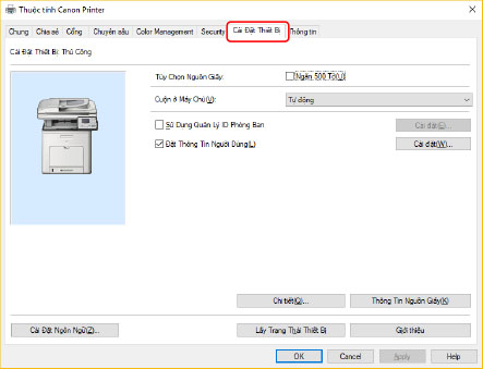 Nhấp vào tờ [Cài Đặt Thiết Bị].