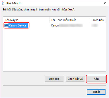 Trong màn hình [Xóa Máy In], nhấp vào [Thoát].