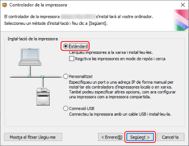 Seleccioneu [Estàndard] → feu clic a [Següent].