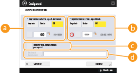 No podeu configurar els paràmetres de l'Informe de gestió de comunicacions mentre <Mostrar registre de treballs> a <Opcions de gestió> està establert en <Off>. A més, si canvieu <Mostrar registre de treballs> a <Opcions de gestió> de <Off> a <On>, <Impr./enviar cada nre. especif. de transm.> i <Imprimir/enviar a l'hora especificada> a l'Informe de gestió de comunicacions canvia automàticament a <Off>.