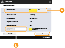 Si "Administrator" està desactivat, no podeu establir <Opcions d'administrador> (l'opció <Usar administrador> es fixa en <Off>).