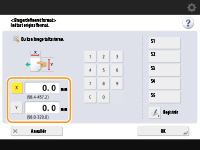 Tryk på <X> eller <Y> for at indtaste længden på hver side med taltasterne.