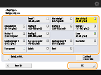Kuvertpapirformatet kan ikke vælge på detaljeskærmbilledet for <Papirtype>. Hvis du vil vælge kuvertpapirtypen, skal du registrere papirtypen i <Registrér Foretrukket papir (Universalbakke)> og derefter trykke på <Foretrukket papir> i trin 2
