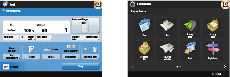 , der vises på Hovedmenu og skærmbilledet Grundlæggende funktioner, for at tilpasse skærmbilledet, som f.eks. omarrangement af knapper eller oprettelse af en genvejsknap. Det er kun en administrator, der kan tilpasse hovedmenuskærmen. Tilpasning af touchpanelet