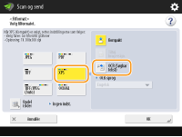 Hvis du i øjeblikket bruger funktionen <Scan og gem>, kan OCR-sproget kun angives, når <Word> er valgt for <OOXML>, eller <OCR (Prioritér nøjagtighed)> er valgt for <PDF>.