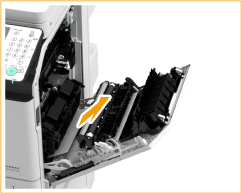 Hvis papir sidder fastklemt, skal du trække forsigtigt i det i pilens retning.