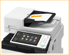 Coloque os originais no vidro de exposição ou no alimentador. Para originais como livros e papel grosso/fino que não possam ser colocados no alimentador, coloque o original no vidro de exposição. Para ler originais com frente e verso ou continuar a ler várias folhas de originais, coloque-os no alimentador. Para obter informações sobre os formatos que é possível colocar, etc., consulte