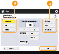 Ao copiar com um rácio de cópia idêntico para papel com o mesmo formato do original, as extremidades do original copiado poderão não ser completamente apresentadas. Para evitar isso, reduza tamanho da imagem carregando em <Rácio de cópia>