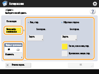 Если выполняется двустороннее копирование и необходимо переместить изображение на обратной стороне листа, укажите требуемое значение в разделе <Обр. стор.>. Чтобы переместить изображение так же, как лицевой стороне, нажмите кнопку <Так же, как на лицевой стороне>. Чтобы переместить изображение симметрично, нажмите кнопку <Противоположно лицевой стороне>. Чтобы переместить изображение на расстояние, отличное от указанного для лицевой стороны, нажмите кнопку <Задать> и введите необходимое значение.