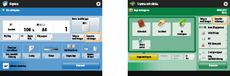 Du kan ändra vilka inställningsknappar som visas på skärmbilderna med grundläggande funktioner (för kopiering, fax och scanning). Du kan även visa en annan grundläggande funktionsskärmbild anpassad för varje inloggad användare.